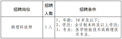根據(jù)醫(yī)院業(yè)務(wù)發(fā)展需求,現(xiàn)病理科需招聘技師1人,具體招聘條件如下: