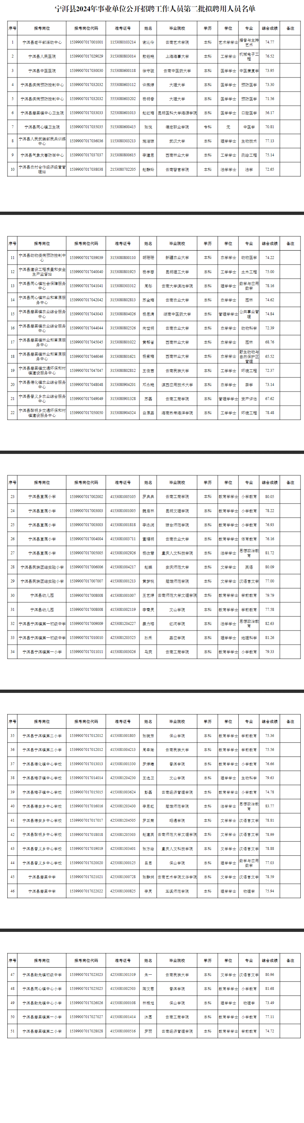 寧洱縣2024年事業(yè)單位公開招聘工作人員第二批擬聘用人員名單公示