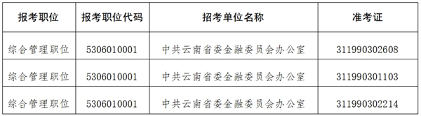 (三)資格復(fù)審等后續(xù)工作期間,請考生及時(shí)關(guān)注中共云南省委金融委員會(huì)辦公室網(wǎng)站公告信息,務(wù)必保持通信工具暢通,如因無法聯(lián)系造成的后果由考生自行承擔(dān)。
