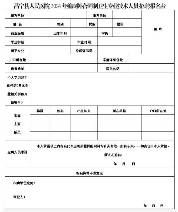 附件2:昌寧縣人民醫(yī)院2024年編制外合同制衛(wèi)生專業(yè)技術(shù)人員招聘報(bào)名表