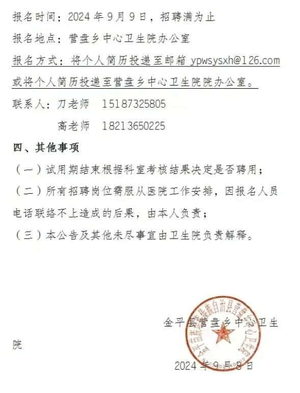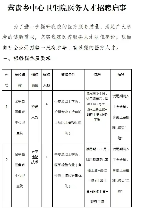 2024年紅河州金平縣營盤鄉(xiāng)中心衛(wèi)生院醫(yī)務(wù)人才招聘啟事