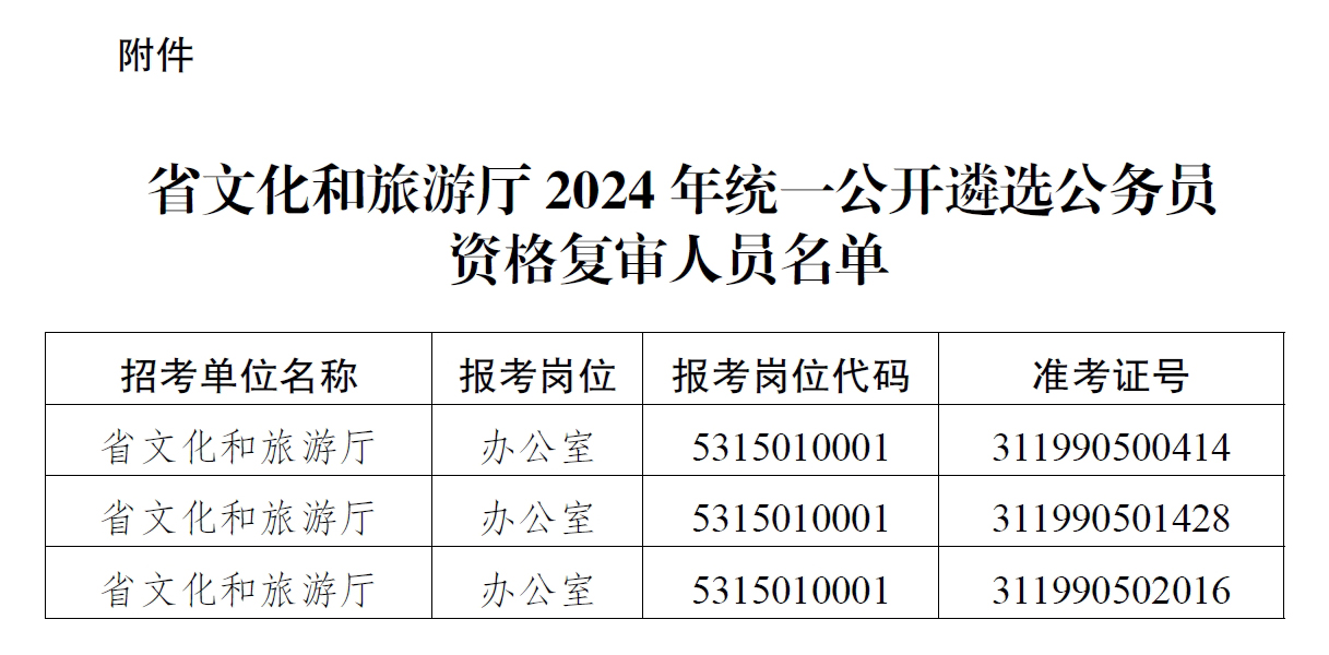 省文化和旅游廳2024年統(tǒng)一公開遴選公務員資格復審公告