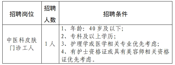 【招聘】中醫(yī)科需招聘勞務派遣工作人員1名