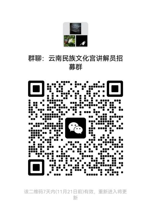 面試時(shí)間為2024年11月25日,報(bào)名后請(qǐng)掃描下方二維碼進(jìn)云南民族文化宮講解員招募群等候具體通知。