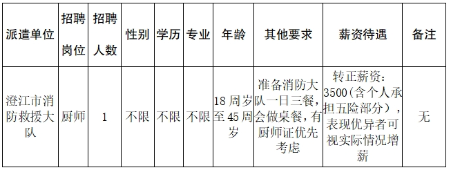 澄江市消防救援大隊(duì)公開招聘廚師招聘公告