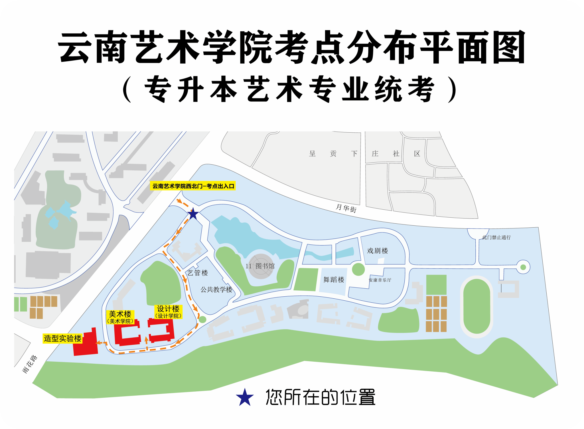 (三)考試前不安排考生查看考場(chǎng),請(qǐng)考生提前熟悉云南藝術(shù)學(xué)院考點(diǎn)位置,規(guī)劃好赴考路線,注意出行安全。所有考生統(tǒng)一由云南藝術(shù)學(xué)院呈貢校區(qū)西北門入校,除考生本人外,其他送考人員及車輛不得進(jìn)入校園。