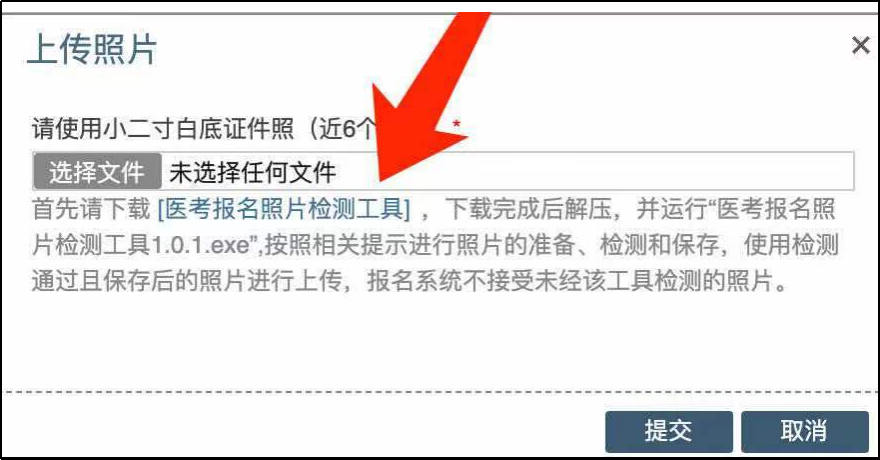 (一)考生在網(wǎng)報(bào)系統(tǒng)上傳個(gè)人小二寸白底證件照時(shí),應(yīng)按照系統(tǒng)提示內(nèi)容下載并運(yùn)行“醫(yī)考報(bào)名照片檢測(cè)工具”,網(wǎng)報(bào)系統(tǒng)只接受經(jīng)該工具檢測(cè)通過且保存后的照片進(jìn)行上傳。