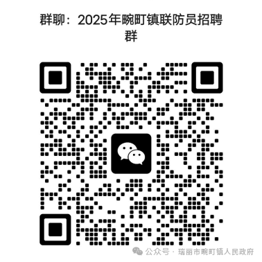 4.報(bào)名人員需掃描招聘公告上的“2025年畹町鎮(zhèn)聯(lián)防員招聘群”微信二維碼進(jìn)群,后續(xù)招聘過程中通過微信群或微信公眾號(hào)“瑞麗市畹町鎮(zhèn)人民政府”發(fā)布招聘相關(guān)事項(xiàng)。(招聘群二維碼附文末)