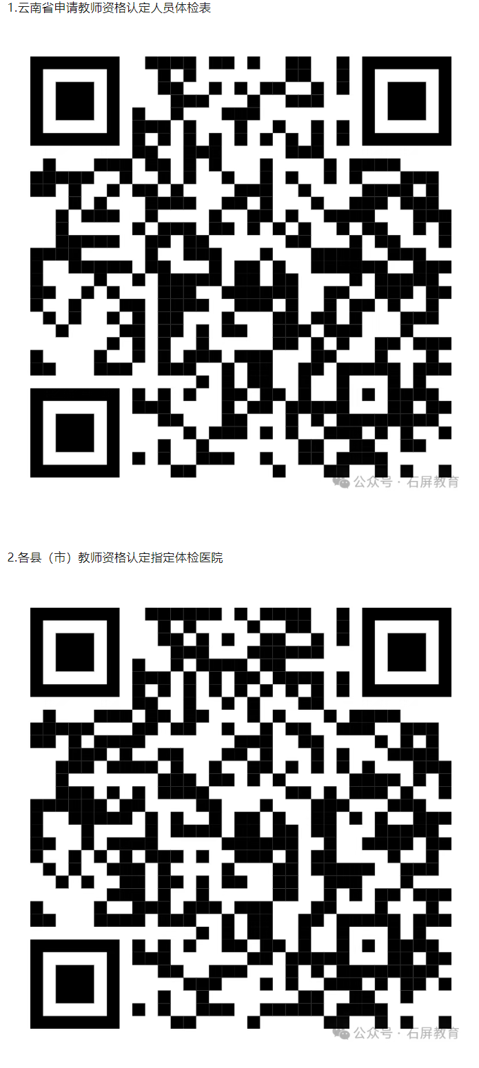 ①《云南省教師資格認定體檢表》(附件)由申請人下載雙面打印后,粘貼本人一寸照片自行到認可醫(yī)院體檢。