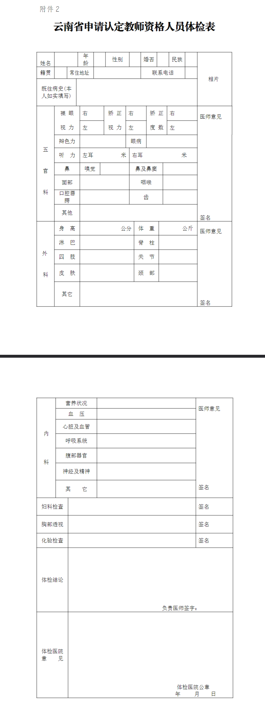2.云南省申請認(rèn)定教師資格人員體檢表