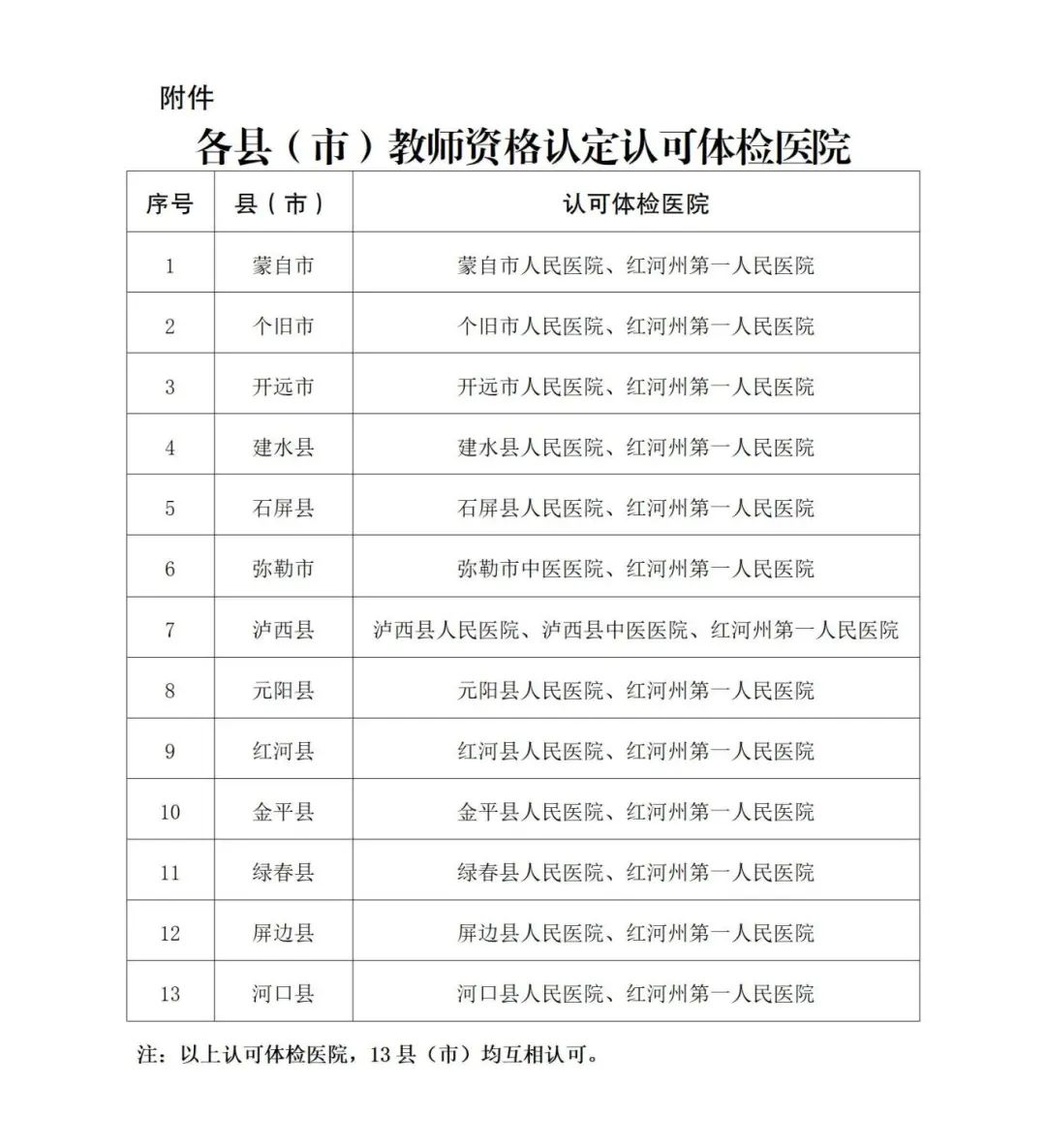 附件:各縣(市)教師資格認定認可體檢醫(yī)院