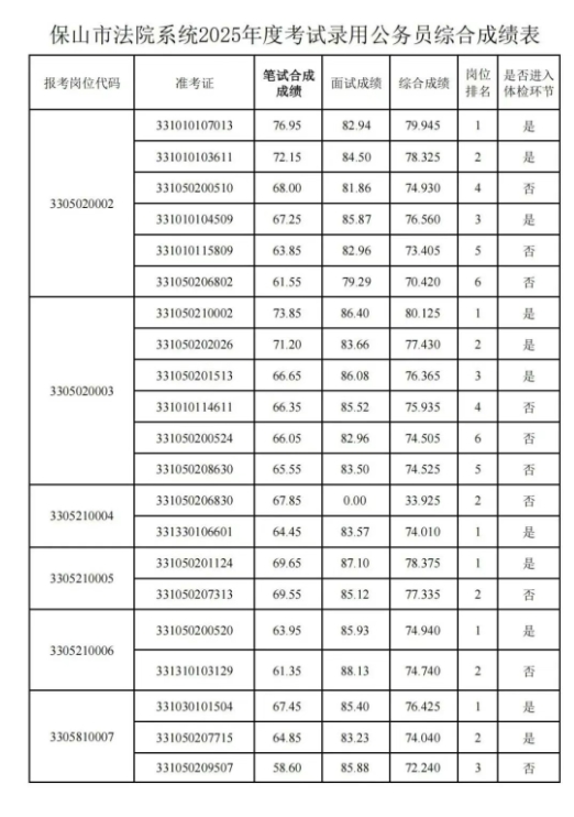 根據(jù)云南省2025年度考試錄用公務(wù)員工作安排,筆試、面試工作已經(jīng)結(jié)束,現(xiàn)將報(bào)考保山市法院系統(tǒng)公務(wù)員考生綜合成績(jī)及后續(xù)工作安排公告如下。