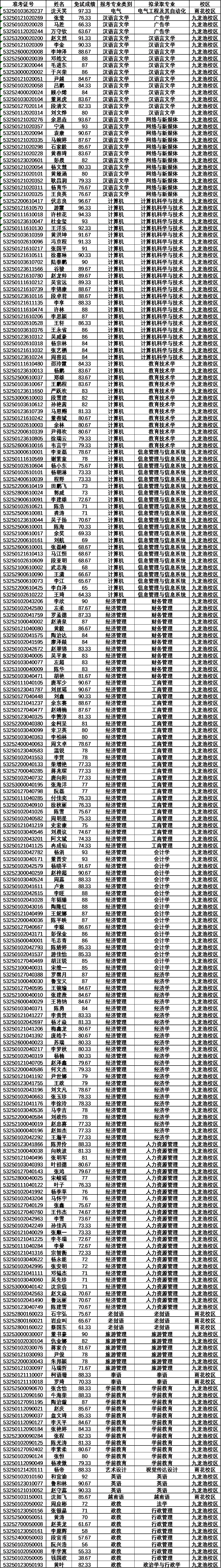 根據(jù)《云南省教育廳關(guān)于印發(fā)2025年普通高等學(xué)校專升本統(tǒng)一考試和免試招生工作辦法的通知》相關(guān)規(guī)定,學(xué)校現(xiàn)將2025年專升本免試批次預(yù)錄取名單予以公示,公示期:2025年4月27日至29日。