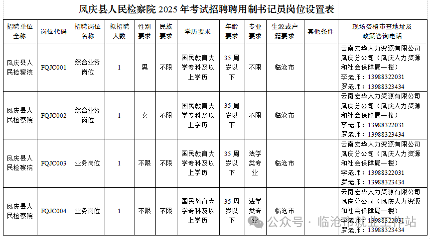 (二)崗位設(shè)置詳見《鳳慶縣人民檢察院2025年考試招聘聘用制書記員崗位設(shè)置表》(以下簡(jiǎn)稱《崗位設(shè)置表》)。
