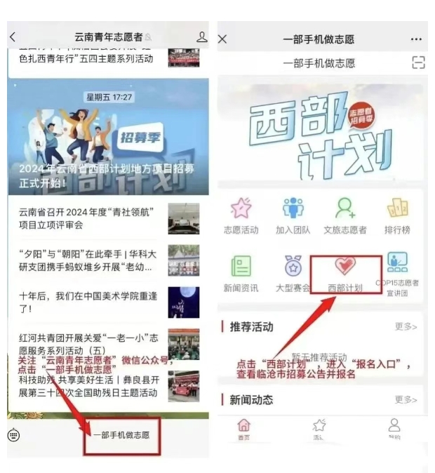 (二)“云南青年志愿者”微信公眾號、“云縣團委”微信公眾號是官方發(fā)布西部計劃招募相關(guān)通知的官方公眾號,請考生及時關(guān)注,招募期間重要事件節(jié)點會通過電話或短信通知相關(guān)事宜,請考生保持個人通訊暢通,因未及時查看相關(guān)通知信息、通訊不暢造成的后果由考生自行承擔(dān)。