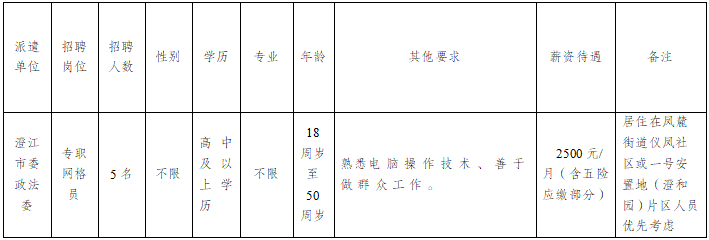 澄江市委政法委公開招聘專職網(wǎng)格員招聘公告