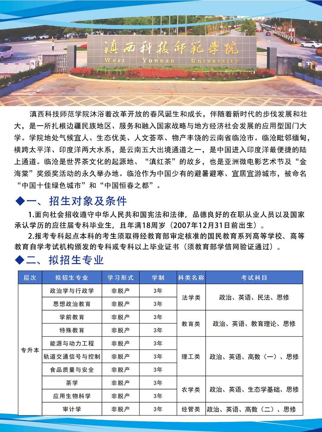 2025年滇西科技師范學(xué)院高等學(xué)歷繼續(xù)教育招生簡章