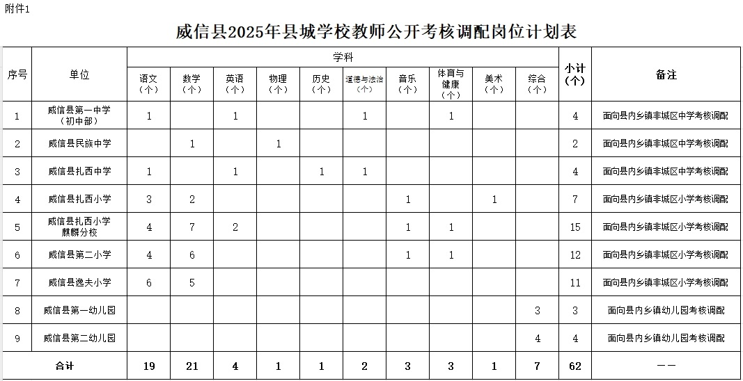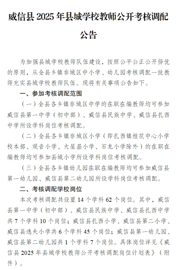 威信縣2025年縣城學(xué)校教師公開考核調(diào)配公告