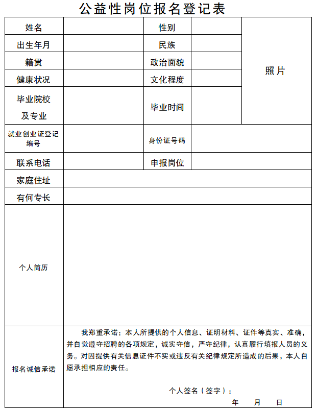 附件:公益性崗位報名登記表