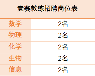 1.在職教練:熟悉競賽輔導(dǎo)工作,能獨立擔(dān)任相關(guān)學(xué)科競賽教學(xué)工作,有指導(dǎo)學(xué)生獲得相關(guān)學(xué)科競賽一等獎的工作經(jīng)歷,有作為主教練指導(dǎo)學(xué)生入選相關(guān)學(xué)科冬(夏)令營并獲得金銀銅牌的經(jīng)歷最佳。