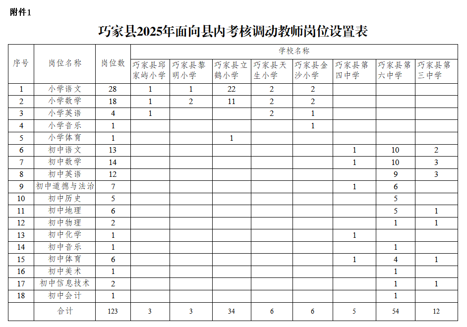 1.巧家縣2025年面向縣內(nèi)考核調(diào)動(dòng)教師崗位設(shè)置表