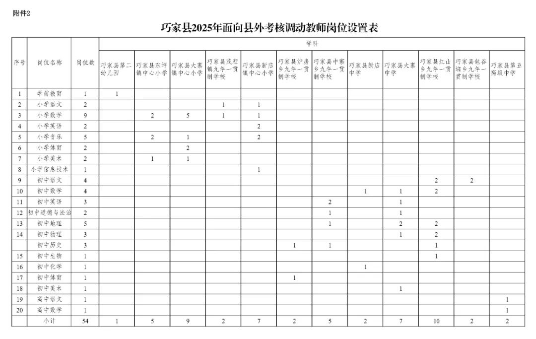 2.巧家縣2025年面向縣外考核調(diào)動(dòng)教師崗位設(shè)置表