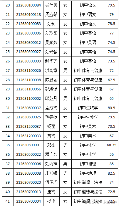 附件:永善縣2025年特崗教師招聘擬進入面試人員名單