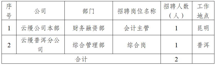 (二)云南云縵汽車旅游投資有限公司招聘崗位需求