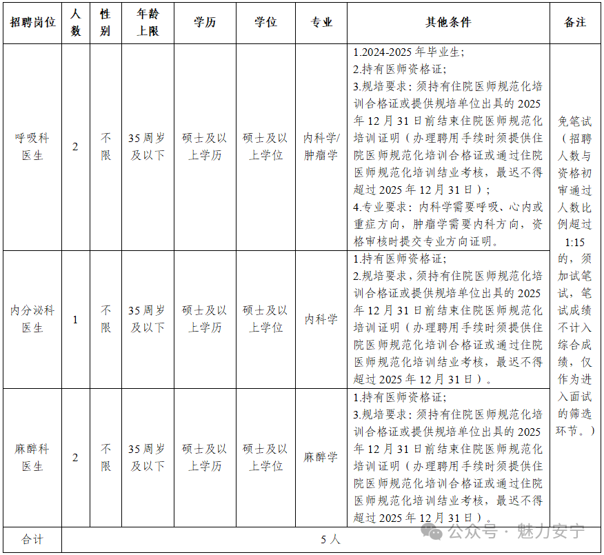 3.根據(jù)綜合成績從高到低的順序按招聘崗位數(shù)進(jìn)行擬錄用。綜合成績并列的,按面試成績排序;招聘崗位按照1:3人數(shù)比例進(jìn)行開考,參考人數(shù)不足1:3比例時,若該崗位為醫(yī)院緊缺崗位,可正常開展,普通參考人員綜合成績須達(dá)到60分合格,免筆試參考人員綜合成績須達(dá)80分合格。