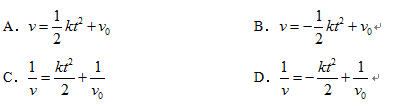,其中k為大于零的常數(shù),當(dāng)t=0時(shí),初速為v0,則速度v與時(shí)間t的關(guān)系為 ( )