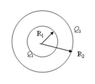 2.在半徑為R1和R2的兩個(gè)同心球面上,均勻分布著電荷Q1和Q2,如圖所示。求:r<R1;R1<r<R2;r>R2三個(gè)區(qū)域內(nèi)的電勢分布。