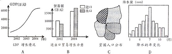 15.下列四圖,是同學(xué)們?yōu)榧亦l(xiāng)所作的自然、社會經(jīng)濟方面的資料分析圖,其中只適宜用GIS數(shù)據(jù)庫軟件制作的是