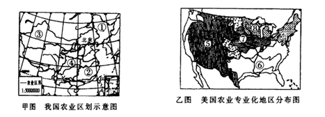 19.乙圖中與甲圖③區(qū)的農(nóng)業(yè)生產(chǎn)條件和農(nóng)業(yè)類型最相似的是 ( )