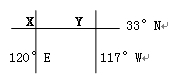 A. 太平洋 B. 大西洋 C.印度洋 D.北冰洋 X Y 33°N