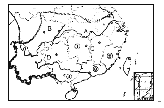 (1)據(jù)報(bào)道,2003年12月9日,黃河內(nèi)蒙古河段累計(jì)封凍230千米,圖中字母A、B、C、D、E代表的五條河流中,表示黃河的字母代號(hào)是。與黃河一樣有結(jié)冰期的是B河和A河;在這五條河流中,汛期最長的河流是河;圖中內(nèi)流區(qū)域和外流區(qū)域的分界線與mm等降水量線相似。