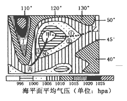 (1)圖中甲一乙和甲一丙是兩鋒面,其中甲一乙為(冷鋒或暖鋒)。圖中①、②、③、④四地,最有可能出現(xiàn)降水現(xiàn)象的是