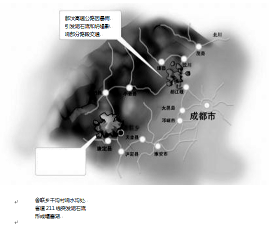 汶川縣“5?12”地震震中映秀鎮(zhèn)由于持續(xù)暴雨,從都江堰通往汶川縣城的生命線——都汶路已經(jīng)因泥石流而阻斷。據(jù)介紹,受到近日暴雨、泥石流等影響,都汶路已發(fā)生滑坡、塌方等大小不等的地質(zhì)災(zāi)害共計(jì)30多處,其中較嚴(yán)重的有五六處。在“5?12”大地震震中映秀鎮(zhèn),都汶路百花大橋一帶,受嚴(yán)重泥石流災(zāi)害影響,道路已經(jīng)中斷。2009.7.17瓢潑大雨,山體滑坡,昨日凌晨5時(shí)許,都江堰虹口鄉(xiāng)遭遇泥石流襲擊,以前只有1米多寬的河溝,現(xiàn)在變得差不多有15米寬。2009.7.23日四川省甘孜藏族自治州康定縣境內(nèi)23日凌晨因暴雨引發(fā)泥石流,大渡河河道在短時(shí)間內(nèi)形成了長3000米、寬約50米的堰塞湖,庫容達(dá)300萬立方米。