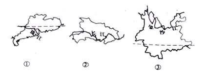 A. ①廣東省 ②湖北省 ③云南省 B. ①福建省 ②云南省 ③湖北省