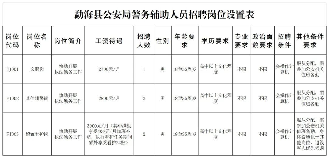 根據(jù)工作需要,勐??h公安局現(xiàn)面向社會公開招聘警務(wù)輔助人員(以下簡稱輔警),有關(guān)事項公告如下: