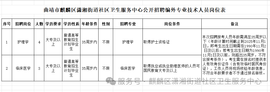 附件1.曲靖市麒麟?yún)^(qū)瀟湘街道社區(qū)衛(wèi)生服務(wù)中心2024年第一次公開(kāi)招聘合同制醫(yī)務(wù)人員崗位表