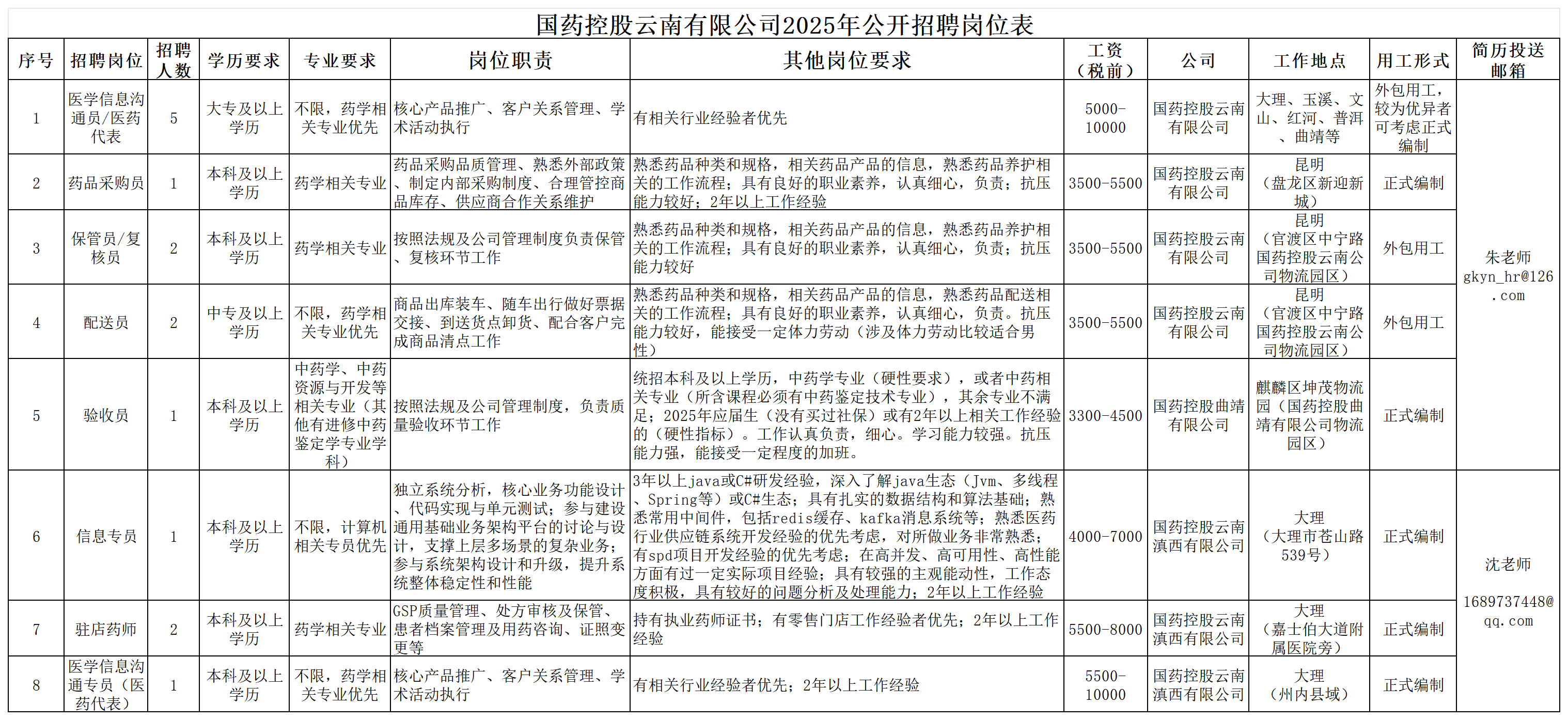 附件1:國(guó)藥控股云南有限公司2025年公開(kāi)招聘崗位表