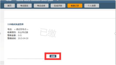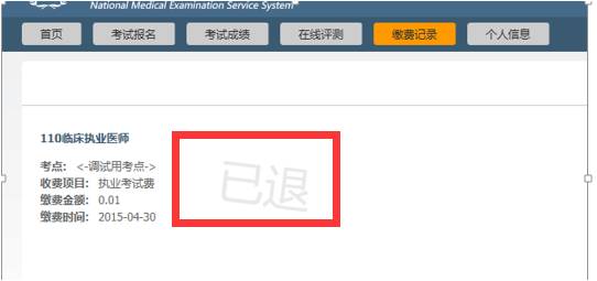 凡參加2015年醫(yī)師資格考試網(wǎng)上報名并已網(wǎng)上繳費的考生,因資格審核不通過現(xiàn)在可以進行退費了。具體操作如下: