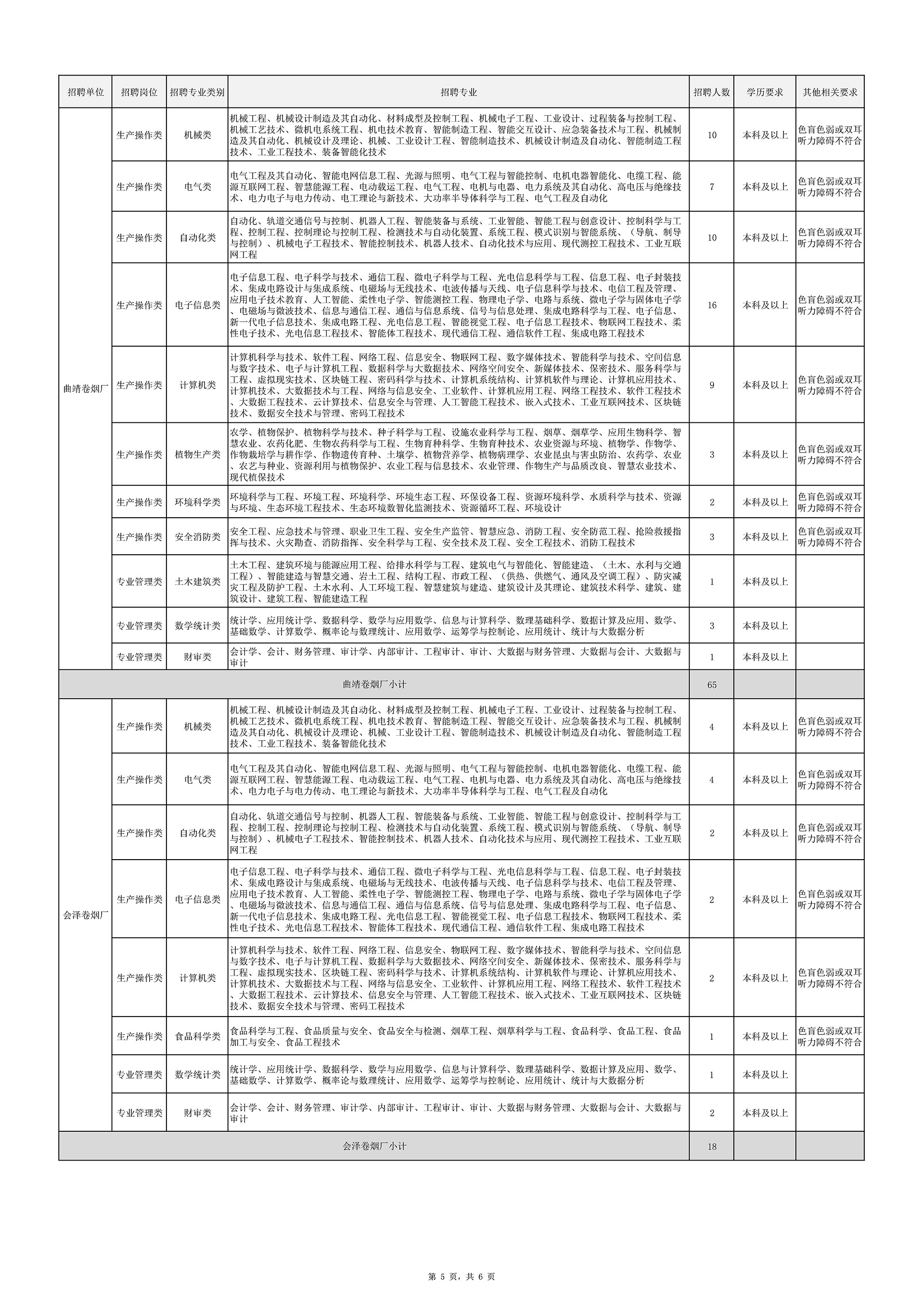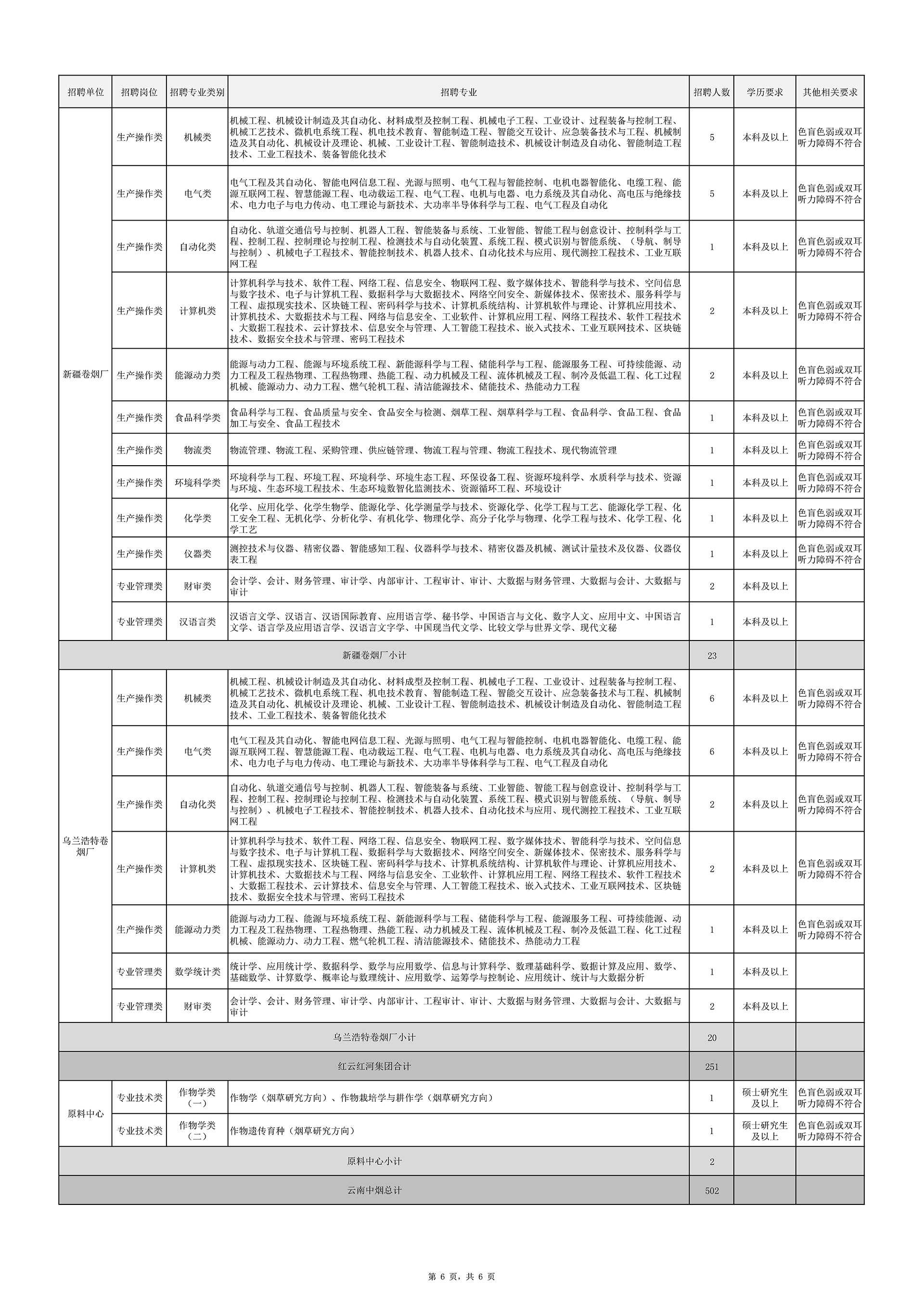 附件:1.云南中煙2026年畢業(yè)生招聘計劃表