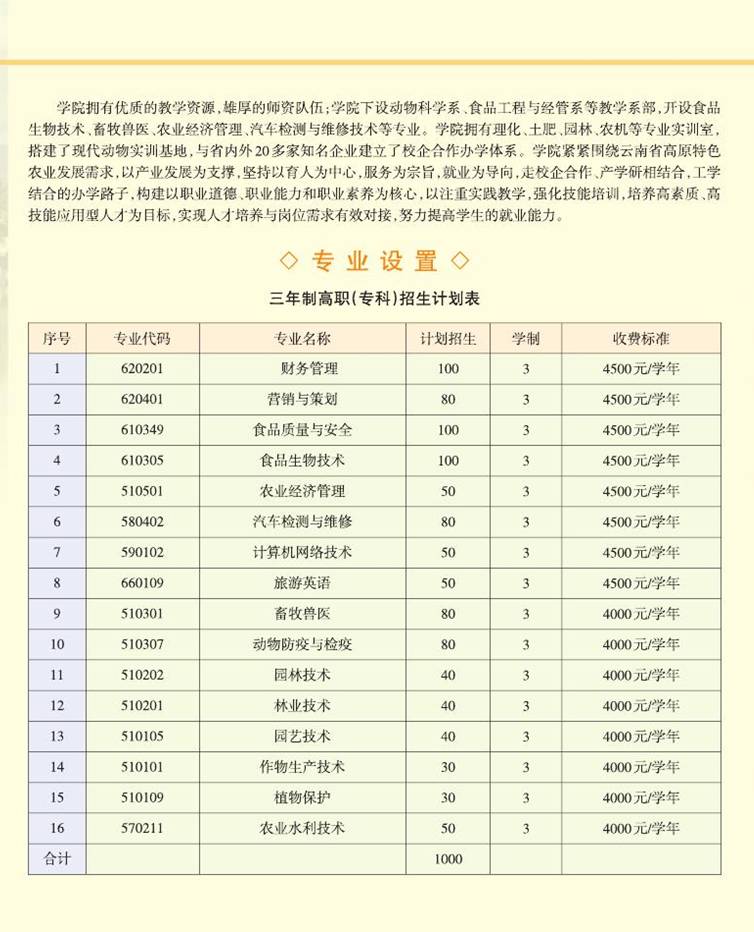 大理農(nóng)林職業(yè)技術(shù)學(xué)院2015年招生專業(yè)及簡介