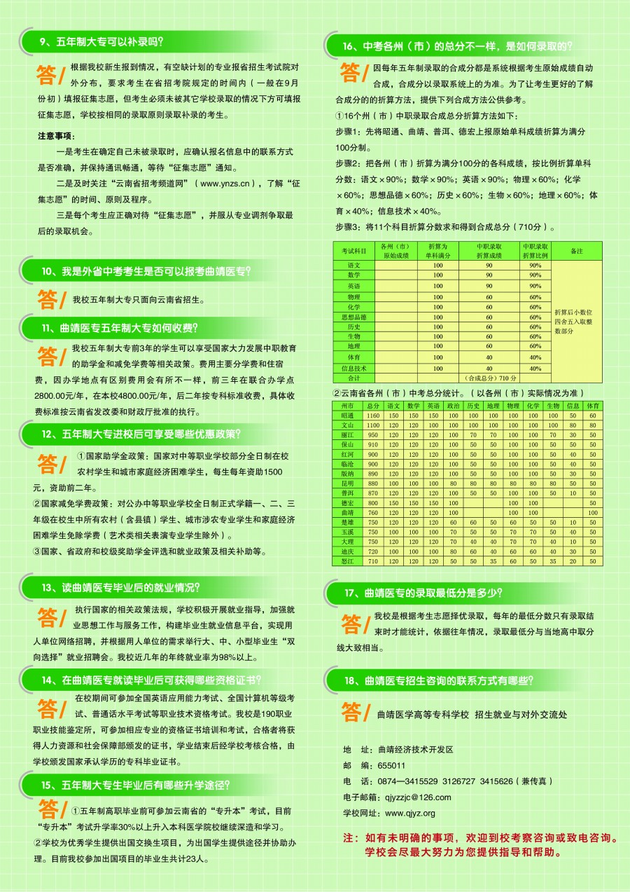 曲靖醫(yī)學(xué)高等專科學(xué)校2015年中考報(bào)考問(wèn)答