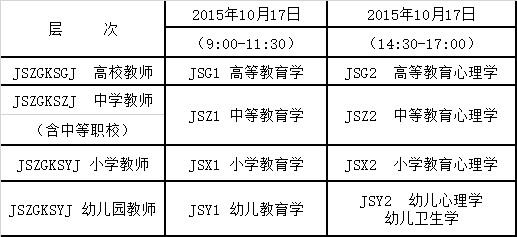 (三)“教師資格考試”設置的層次和考試科目如下表, 用于“教師資格考試”的考號只能選擇表中所列層次及相應課程。具體考試時間安排如下: