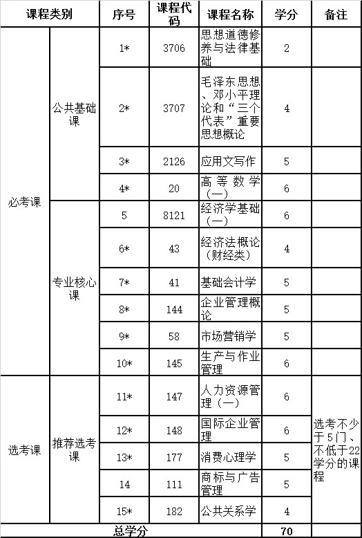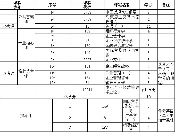 高等教育自學(xué)考試中小企業(yè)經(jīng)營(yíng)管理專業(yè)(獨(dú)立本科段)課程設(shè)置