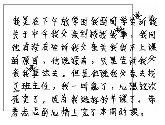 ●采用紅色光源主觀解答題書寫部分進行掃描,光源將把紅色或與紅色相近的顏色的字跡過濾掉,而保留非紅色的字跡。因此,如果用淺顏色的筆書寫,掃描出來的圖象就淺,導致評卷教師看不清楚。