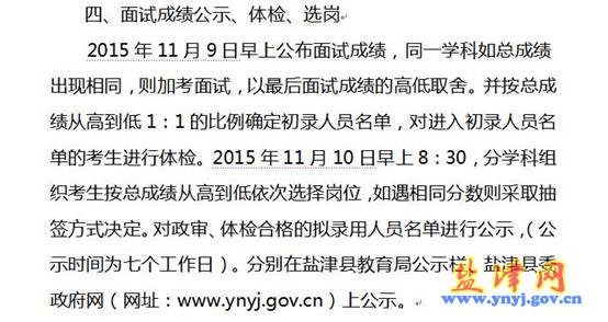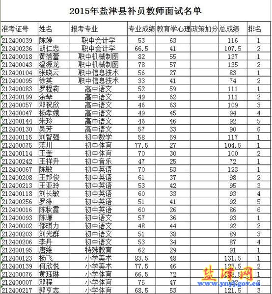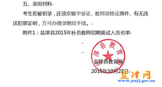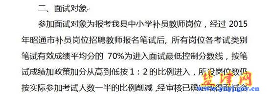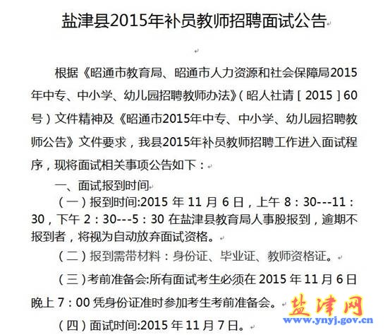昭通市鹽津縣2015年補(bǔ)員教師招聘面試公告