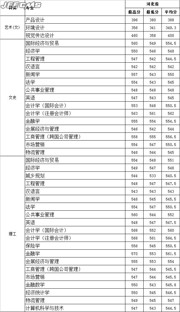 云南財(cái)經(jīng)大學(xué)2015年河北省錄取情況一覽表